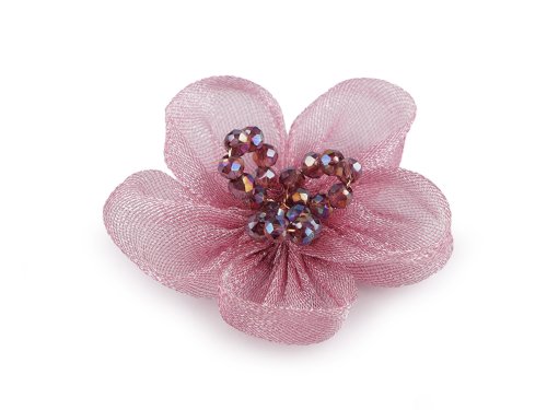 Organzový květ s broušenými korálky k našití a nalepení Ø4,5 cm - (4) starorůžová (2 ks)