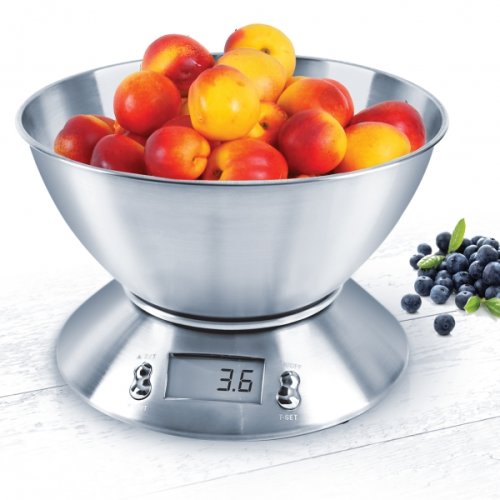 Nerezová digitální váha s LCD displejem má přehledné menu s hodnotami udávanými v g a oz a váživost až 5 kg .