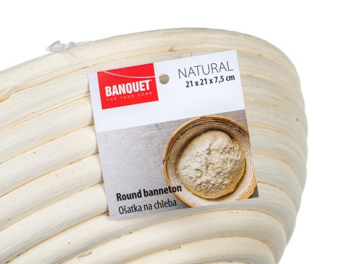 Kulatá ošatka z přírodního pedigu, s dekorem květu, je určena na kynutí chleba. Po použití se doporučuje ošetřit pouze vlhkým hadříkem.