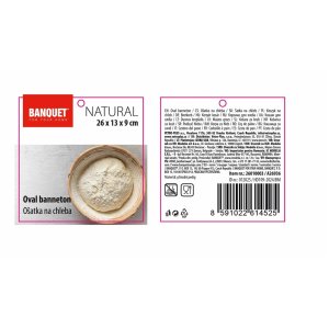 Oválná ošatka na přípravu domácího chleba s motivem KLAS. Lze využít na kynutí těsta, uskladnění chleba, servírování pečiva i jako dekoraci. Tvar a struktura ošatky se otiskne do těsta a vytvoří tak klasický vzhled bochníku. Vyrobena z přírodního pedigu. Ovál 26 x 13 a výška 9 cm (bochník 1 kg, potřeba 500 g mouky). Při mytí se nemáčí, pouze se nechají oschnout nebo je lze vykartáčovat. EAN 8591022614525