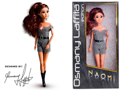 Naomi je jednou z limitované edice kloubových panenek navržené Osmanym Laffitou. Panenka má detailně propracovaný obličej a od ostatních panenek se liší osobitým stylem. Naomi má cit pro design a estetiku. Je 31 cm vysoká, může otáčet hlavičkou, hýbat pasem, nohama, rukama v ramenou, v loktech a v zápěstí. Díky její ohebnosti se snadno obléká a můžete tak nastavit ideální postoj podle svých představ. Brunetka Naomi je oblečená do černo-bílého overalu, který zdobí opasek se stříbrnou sponou a obuta do černých vysokých bot s podpadkem. Panenka Naomi od Osmanyho udělá jistě radost každé slečně.