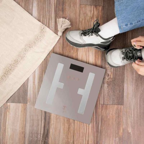 Moderní digitální skleněná váha s elegantním taupe šedohnědým designem nabízí nejen přesné vážení, ale i pokročilou analýzu tělesných parametrů. Díky tvrzenému sklu, dotykovým senzorům a modrému LED podsvícení se stane stylovým a funkčním doplňkem každé koupelny.
