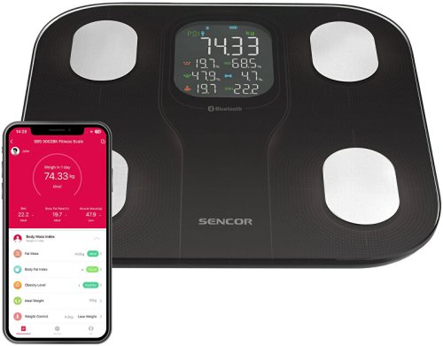 Chytrá fitness váha s velkým přehledným displejem a moderním designem. Díky Bluetooth připojení ji snadno propojíte s aplikací Sencor HOME pro iOS i Android, kde si můžete zobrazit historii a analýzu měření. Data se automaticky synchronizují s aplikacemi Apple Health, Google Fit, Fitbit a Strava pro kompletní přehled o vašem zdraví. Váha měří BMI, procento tuku, vody, svalové i kostní hmoty a doporučí denní kalorický příjem. Je vybavena tvrzeným bezpečnostním sklem, funkcí Auto-ON pro okamžité vážení a možností volby jednotek kg/lb. Automaticky se vypne při nečinnosti a je napájena čtyřmi AAA bateriemi, které jsou součástí balení.