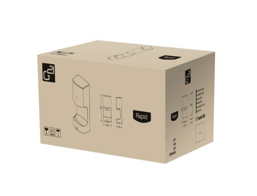 G21 Rapid má nízkou spotřebu elektrické energie. Díky bezdotykovému zapínání a vypínání osoušeče se minimalizuje šíření bakterií na rukou. Silnější a rychlejší osoušení vám poskytne maximální komfort. Kryt je vyroben z antibakteriálního ABS plastu, který je velice lehký. Design osoušeče působí elegantně a čistě.