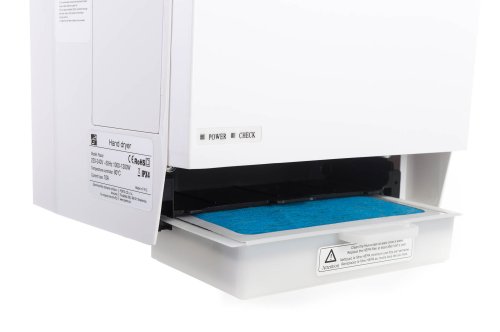 Vložte mokré ruce do osoušeče. Pomalým vysouváním rukou je voda ihned odehnána velkým tlakem teplého vzduchu. Proudění vzduchu obstarávají trysky, které jsou umístěné na obou stranách sušícího prostoru. Vodu, odfouknutou tlakem vzduchu, zadržuje odpařovací nádobka.