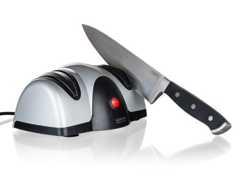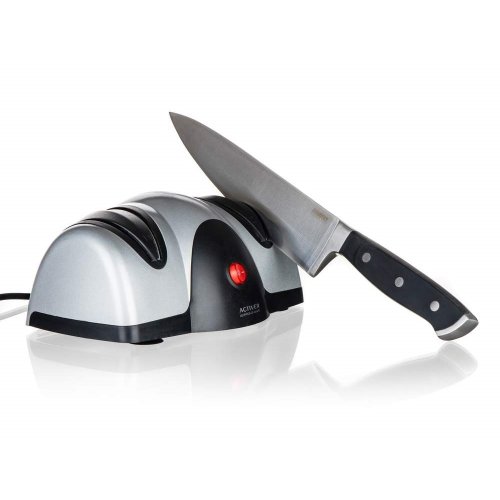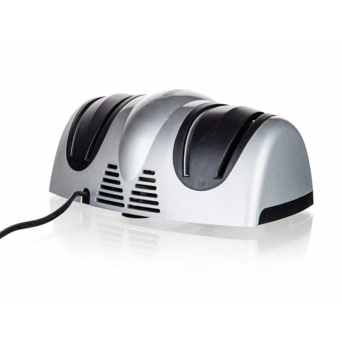 Brousek na nože je určen pro broušení klasických ocelových kuchyňských nožů. Má 4 vodicí drážky pro nože a 2 brusné kotouče pro jemné a hrubé broušení. Disponuje protiskluzovou základnou pro snadnou a bezpečnou manipulaci. Pro snadnou udržbu jsou ve spodní části otvory pro vysypání kovového odpadu. Brousek je určen pro praváky i leváky a má 2 brusné kameny. Wolframový kámen zajistí zostření čepele a obnovení ostří do optimálního tvaru. Keramický kámen je určený pro leštění čepele a vyrovnání povrchových nerovností.