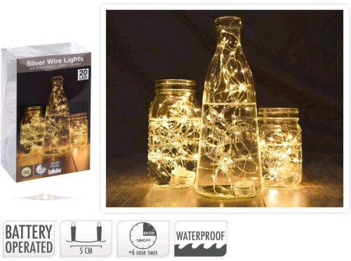 LED dekorace světla - střbrný drát teplá bílá časovač baterie: 2 x CR2032 baterie jsou součástí zboží