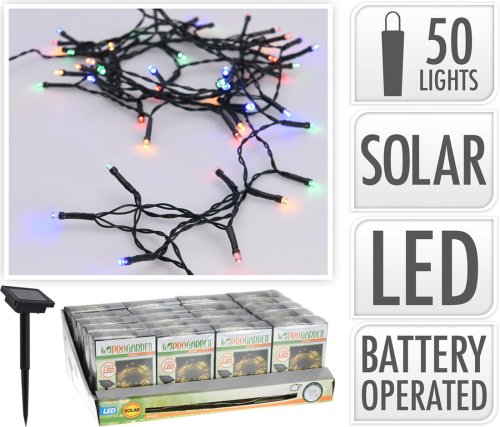 Světelný solární řetěz s 50LED barevnými žárovkami vykouzlí příjemmou atmosféru na Vaší zahradě.