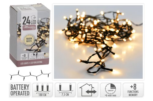 Vánoční osvětlení 1,8 m, 24LED, teplá BÍ, 8 funkcí, s časovačem.