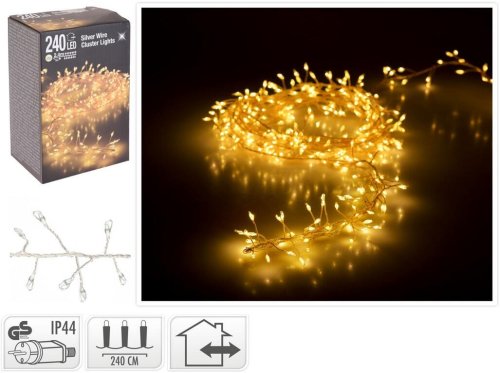 délka: 2,4 m přívodní kabel: 5 m osvětlení: 240 LED materiál: stříbrný drát vnitřní / venkovní použití