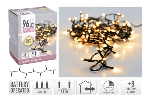 Vánoční osvětlení 7 m, 96LED, teplá BÍ, 8 funkcí, ZE, IP44.