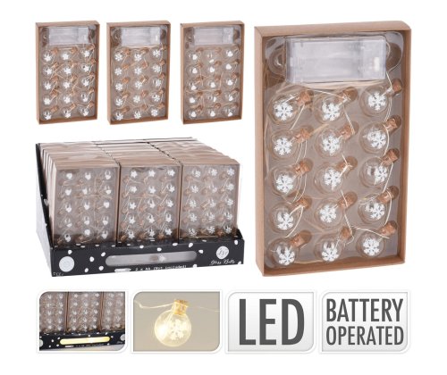 délka řetězu: 1,5 m průměr žárovky: 2,5 cm teplá bílá vzdálenost žárovek: 10 cm přívodní kabel: 30 cm provedení: sněhová vločka, hvězda, srdce
