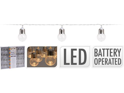 délka řetězu: 4,5 m pr. žárovky: 4 cm teplá bílá vzdálenost žárovek: 15 cm přívodní kabel: 30 cm v boxu s plastovým víkem