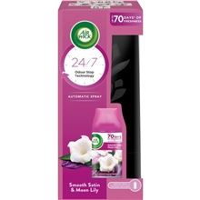 Air Wick FreshMatic automatický sprej ve formě difuzéru a náhradní náplň Automaticky uvolňuje dávky vůně a zachovává stálou hladinu svěžesti ve vaší domácnosti Při nastavení nízké intenzity uvolňování …