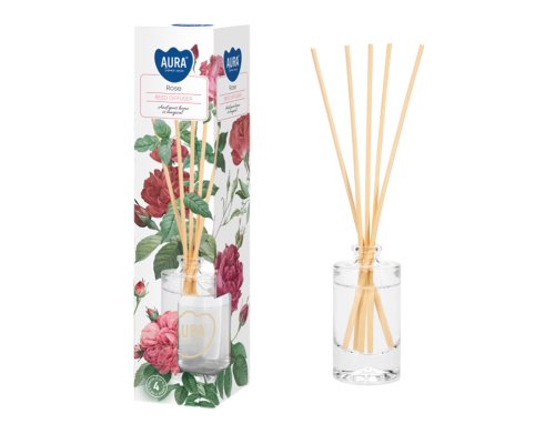 Odpařovací osvěžovač vzduchu s tyčinkami na provonění bytu, kanceláří atd. Čím více se vloží tyčinek, tím bude vůně intenzivnější. Vůně: růže.
