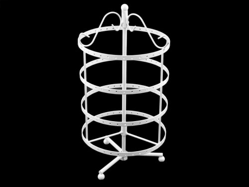 Stylový stojan Vám usnadní přemýšlení nad tím, kam zavěsit náušnice, aby byly přehledně uspořádány. Po celém obvodu všech čtyř obručí jsou vyvrtány dírky, takže náušnic zavěsíte opravdu mnoho. Stojan má cca 144 dírek, tzn. že na každé obruči se nachází 36 dírek pro 18 párů náušnic.Obruče mají průměr 15 cm. Celková výška stojanu je 30 cm.