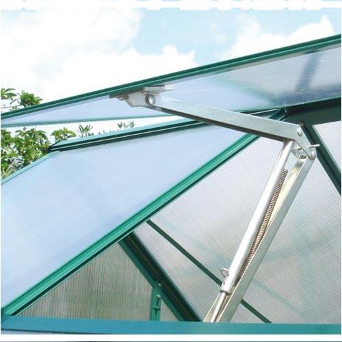 Téměř pro všechny typy polykarbonátových skleníků se sedlovou střechou. Okenní automatický otevírač ke skleníku je vybavený pístem s regulační pákou, který nahradí manuální otevírání.