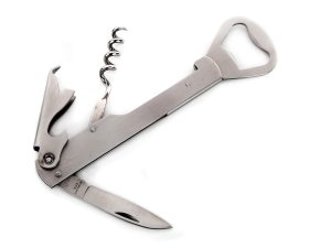 Číšnický otvírák je univerzální otvírák / nůž na lahve, v nerezovém provedení. Využijete na otevírání láhví s klasickým korkovým špuntem, ale i korunkovým uzávěrem.