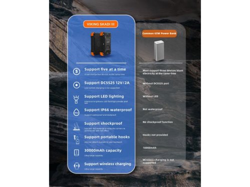 S naší outdoorovou powerbankou Viking SKADI III už se nemusíte ničeho obávat. Tato vysoce odolná a výkonná powerbanka s kapacitou 30000 mAh/111Wh byla navržena tak, aby vydržela extrémní podmínky a poskytla vám energii, když ji nejvíc potřebujete.