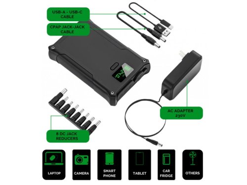 S kapacitou 38400 mAh (138Wh) a maximálním výkonem až 160 W spolehlivě napájí širokou škálu zařízení – od mobilních telefonů přes notebooky až po 12V spotřebiče. Nabízí výstupy USB-A, USB-C, DC-JACK pro notebooky a cigaretovou zásuvku.
