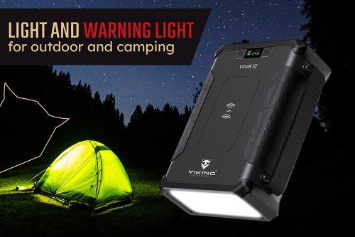 Outdoorová powerbanka Viking VIDAR III • Kapacita: 96000mAh/307.2Wh • Maximální výkon: 180W • Zabudované LED světlo • Široká škála vstupů a výstupů (USB-A, USB-C, Cigaretová zásuvka, DC-jack, WIRELESS Qi) • Možnost solárního napájení • Funkce Pass-Through • Odolnost IP65