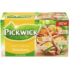• Pickwick Fruit Fusion, výběr 4 ovocnobylinných čajů aromatizovaných s kořením a/nebo bylinami a/nebo ovocem