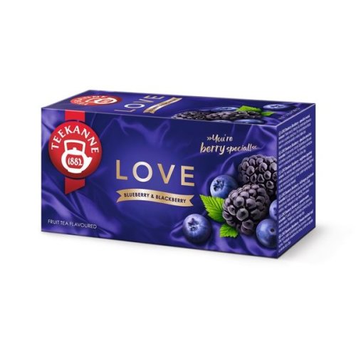 Ovocný čaj Teekanne Love - borůvka a ostružina, souhra chuti borůvek a ostružin vytváří chuťový zážitek, při kterém se vám rozbuší srdce, čaj love je pastvou pro chuťové buňky
