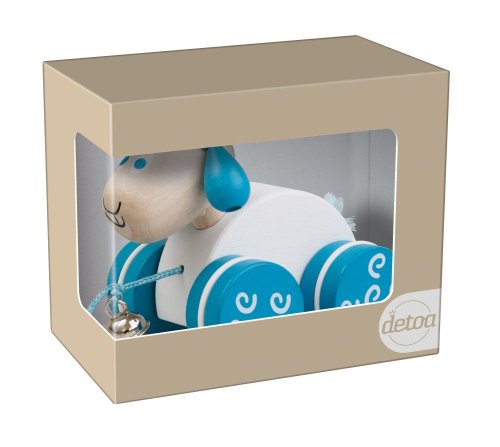 Dřevěná tahací hračka s rolničkou v podobě ovečky.