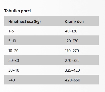 | váha psa (kg) | gramy/den |