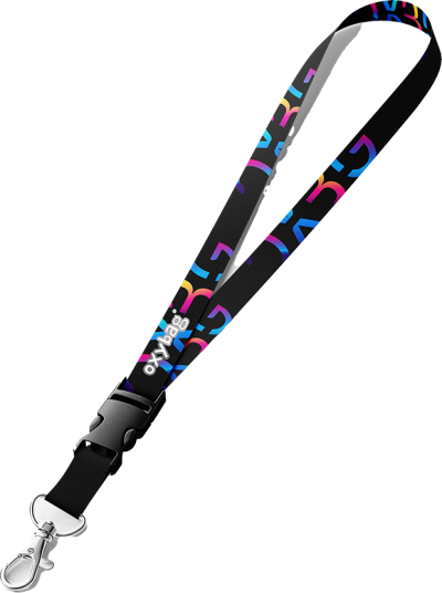 Klíčenka na krk s barevným potiskem a s karabinou.