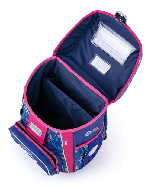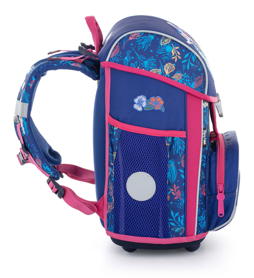 je anatomicky tvarovaná a zajišťuje tak správné usazení na zádech vyztužená záda a vnitřní výztuha udržují stálý tvar batohu polstrování je z příjemného prodyšného materiálu široké měkčené popruhy jsou navrženy tak, aby dokonale přilnuly a rovnoměrně zatížily ramena dítěte skládá se z jedné prostorné komory, kam se pohodlně vejdou všechny školní pomůcky pro děti v 1. a ve 2. třídě dno batohu je z pevného materiálu, chrání tím obsah před převržením a vysypáním zapínání je na bezpečnostní přezku přední kapsička je určena na svačinu nechybí řada reflexních prvků, díky kterým je aktovka viditelnější