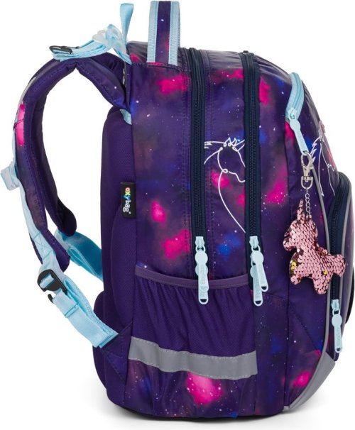 Detaily, které mají význam: Dvě vnitřní komory poskytují dostatek místa pro učebnice, sešity a osobní věci na volný čas. Odolné dno chrání obsah batohu před znečištěním zvenčí a zabraňuje prolití jakýchkoli tekutin uvnitř. Po stranách se nachází otevřená kapsa na láhev a malá kapsa na zip, které vám umožní rychlý přístup k drobnostem. Přední kapsa je vhodná na svačinový box a menší kapsička na drobnosti, obě jsou opatřeny zipem.