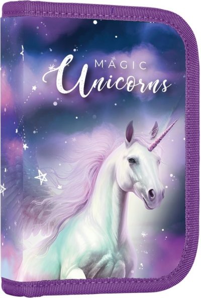 jednopatrový školní penál se dvěma chlopněmi bez náplně gumová poutka k uchycení psacích potřeb (psací potřeby nejsou součástí balení) na vnitřní chlopni je průhledná fólie pro rozvrh hodin