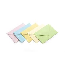 obálky s hladkým povrchem jemné pastelové barvy - růžová, světle modrá, žlutá, ivory, světle zelená vlhčící šípová klopa formát 70x100 mm gramáž 130 g/m2 ideální pro komplimentku, vizitku a jiné zvláštní …