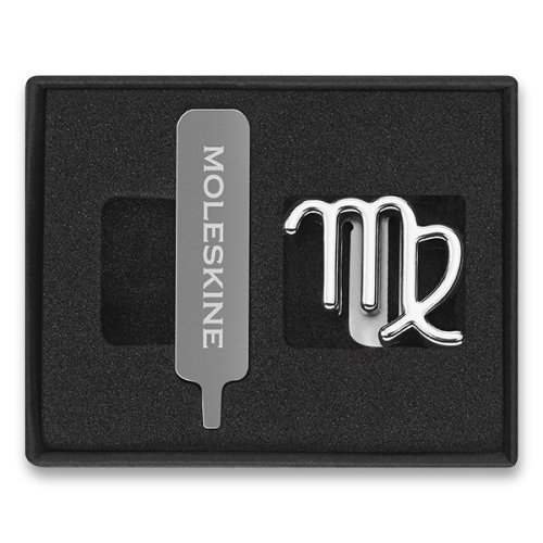 Balení obsahuje:, * ozdobu=symbol zvěrokruhu k personifikaci zápisníku nebo diáře, * kovový šroubek pro upevnění ozdoby ke gumičce zápisníku nebo diáře, * speciální šroubovák, * návod k použití (v anglickém jazyce), Vyrobeno ze slitiny zinku