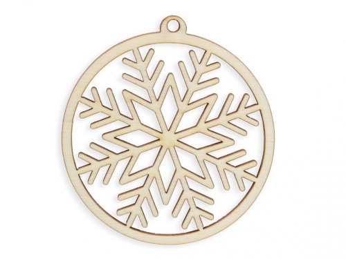 Dřevěná vánoční ozdoba v podobě sněhové vločky umístěné v kruhu. Vhodná na stromeček i k dekorování interiéru či vazeb. Možno použít v podobě přírodní či obarvit (vodové, akrylové barvy, tempery, pastelky…). Materál: topolová překližka. Český výrobek. Rozměry: průměr 6,2cm, tloušťka 0,3cm. Barva: přírodní.