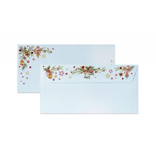 Ozdobné obálky formátu DL, elegantní varianta pro vaši sezónní korespondenci či přání Vyrobeno z papíru vyšší gramáže s vánočním dekorem Navlhčovací lepidlo Formát: DL Rozměry: 110 x 220 mm Gramáž: 120 …