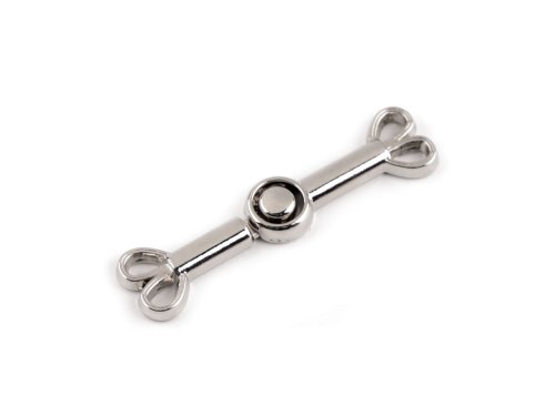Minimalistické kovové zapínání se skládá ze dvou částí, které do sebe zaháknete. Vynikne na oděvech i doplňcích. K materiálu se přišívá. Celková délka po zapnutí je 40 mm.