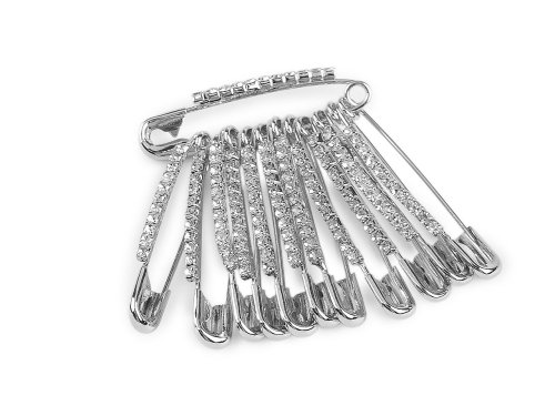 Spínací špendlík zdobený broušenými kamínky obohatí vaši sbírku stylových doplňků. Tento elegantní a zároveň praktický kousek dodá každému vašemu outfitu jemnou nadčasovou eleganci. Spínací špendlík není pouze estetickým doplňkem, ale též velmi praktickým pomocníkem v každodenním životě. Je ideální pro sepnutí šátků a šálů nebo jako zajímavý prvek na vašem saku, kabátu, šatech i halence. Na svazku je 12 ks špendlíků.