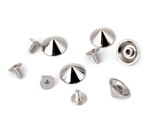 Šroubovací hroty skvěle ozdobí každou kabelku, psaníčko, oděvy, kožené bundy i boty. Skládají se ze dvou částí, které do sebe jednoduše zašroubujete. Můžete je použít i jako nožičky na kabelky. Délka po zašroubování obou částí je 10,5 mm. Hrot je vhodný pro látky s tloušťkou 3 mm.