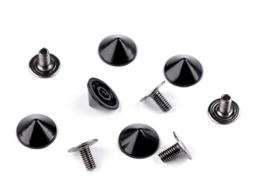 Šroubovací hroty budou ozdobou každé kabelky, psaníčka[, oděvů, kožených bund] i bot. Skládají se ze dvou částí, které do sebe jednoduše zašroubujete. Můžete je použít i jako nožičky na kabelky. Délka po zašroubování obou částí je 9 mm. Hrot je vhodný pro látky s tloušťkou 2 mm.