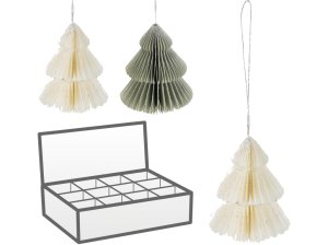 Papírové ozdoby o průměru 80 mm s vánočními motivy v zelené a bílé barvě, doplněné stříbrným glitrem. Jednotlivé kusy jsou dodávány v mixu barev a motivů, které se mohou mírně lišit.