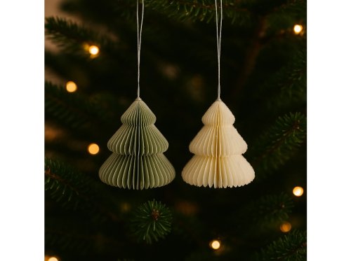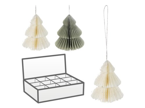 Ozdoby papír 80mm Vánoční na stromek mix, zelená, bílá se stříbrným glitrem