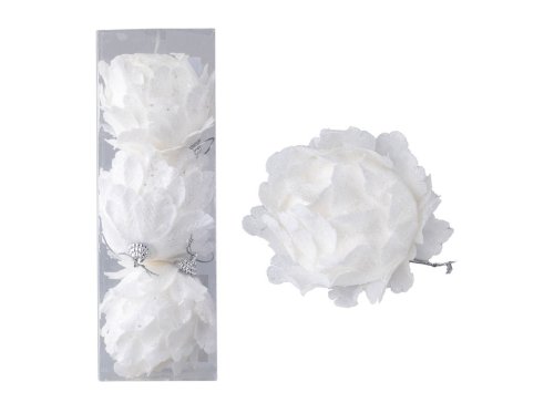Ozdoby textil 6ks 40mm Vánoční na stromeček květ, bílá s glitrem