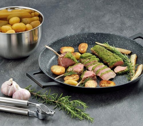 Servírovací pánev se stane jen praktickým pomocníkem při přípravě pokrmu, ale také designovým doplňkem stolování. Pánev má široké využití – jsou ideální pro servírování jídel, jako je například pečené maso, ryby, zelenina, brambory, rizoto a další speciality.