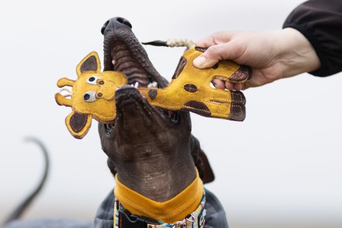 Kůže použita na hračkách je barvena zdravotně nezávadnými barvami, které mohou při kontaktu se slinami nebo vodou mírně pouštět. Nemusíte se však bát, pejskovi to nějak neuškodí. Hračka je vyplněná přírodními kokosovými vlákny, díky čemuž je na pohmat tvrdá.