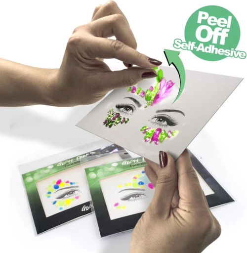 Tyto třpytivé kamínky jsou perfektním doplňkem pro festivaly, párty, karnevaly i pro běžné nošení. Kamínky jsou samolepicí a snadno se nanášejí na obličej a tělo. Jsou vyrobeny z netoxického materiálu a jsou šetrné k pokožce. Před aplikací kamínků pokožku očistěte vodou a mýdlem. Z kamínku opatrně odstraňte ochrannou fólii a kamínek umístěte na požadované místo. Jemně ho přitlačte na obličej. Poté můžete aplikovat make-up nebo třpytky okolo kamínků. Je na Vás jak kamínky umístíte. Buď se držte návod a nebo je dejte podle vlastní fantazie. Se třpytkami a barvami od PaintGlow budete zářit celý den.