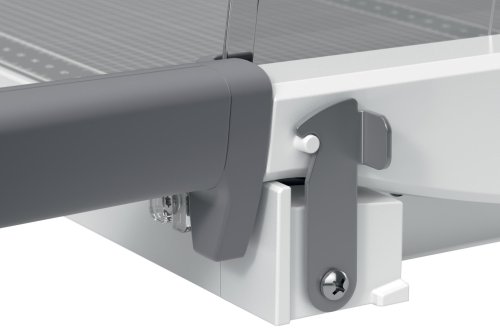 Průhledná ruční svorka na papír pevně zajišťuje jeho přesnou polohu, ergonomická rukojeť umožňuje pohodlné a snadné řezání