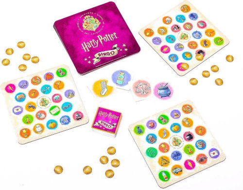 Cíl hry: Vaším cílem je sbírat kouzelné předměty a postavy, abyste jako první zaplnili svou bingo kartu a vyhráli! Hra je určena pro 2–6 hráčů a poskytne hodiny zábavy fanouškům světa čar a kouzel, kteří se pokaždé rádi ponoří do světa Harryho Pottera. Kouzelný design: Hrací desky a karty obsahují okouzlující ilustrace kotlíků, mandragor, maskotů kolejí v Bradavicích, symbolů Relikvií smrti a mnoha dalších magických prvků. Sbírejte tyto kouzelné předměty a postavy, abyste jako první zaplnili svou bingo kartu a zvítězili!