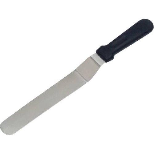 Zahnutá paletka pro snadné zdobení dortů krémem či polevou. Délka 25,5 cm.